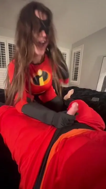 - Content features nude Elastigirl cosplay.