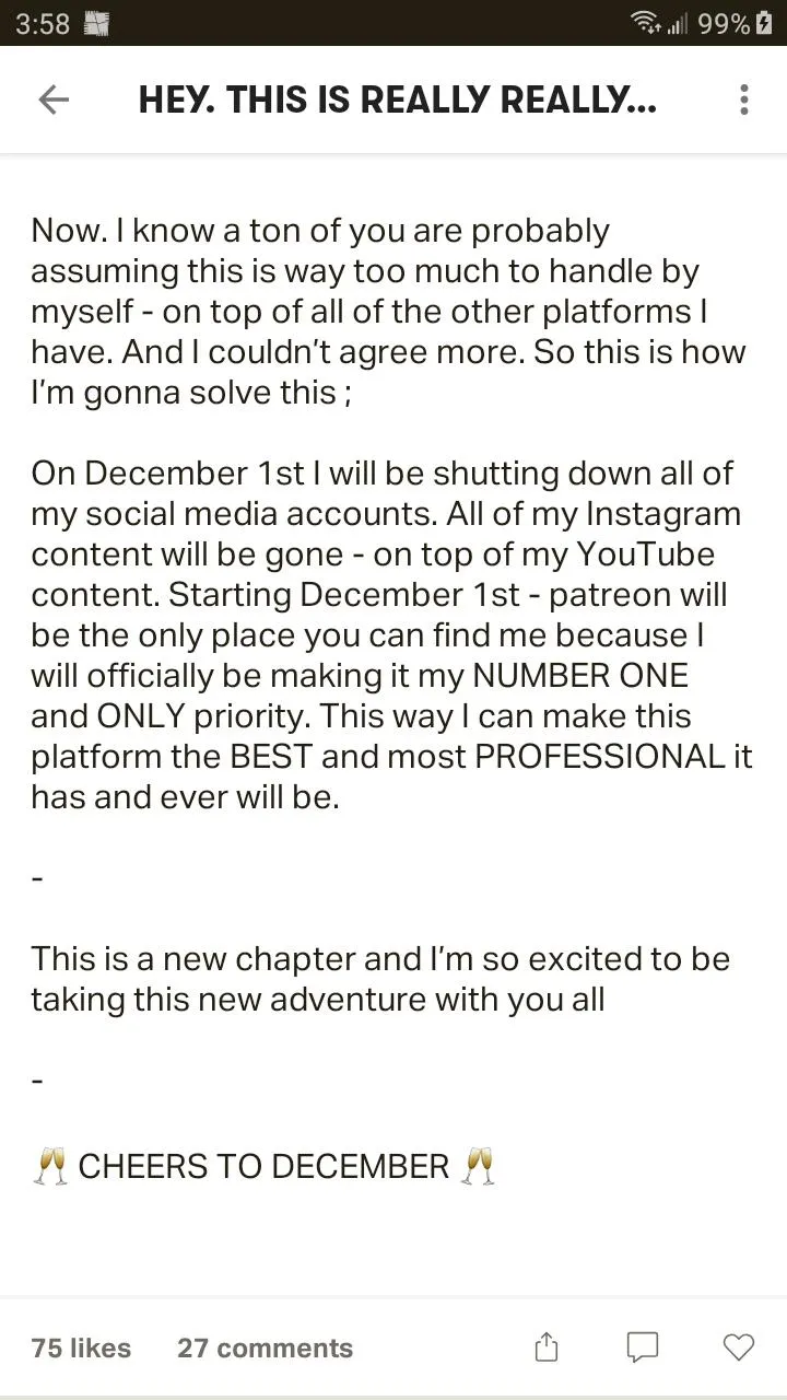 - Archive includes past content from her Patreon.